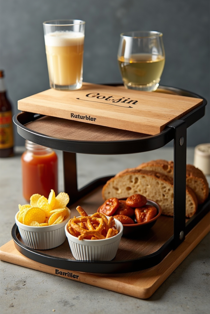 A custom BBQ caddy makes for a thoughtful gift that combines style and practicality. Designed to hold snacks, chips, pretzels, and drinks, this clever setup is perfect for his casual evenings at home.