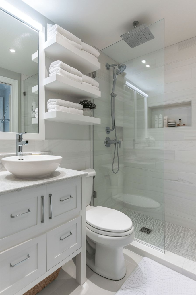 Even limited space can feel luxurious with a well-designed compact white bathroom. Clever storage, corner fixtures, and streamlined layouts maximize every inch without sacrificing style.