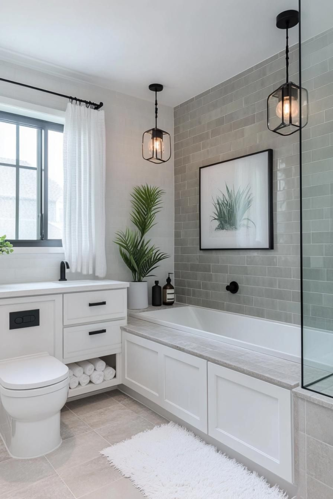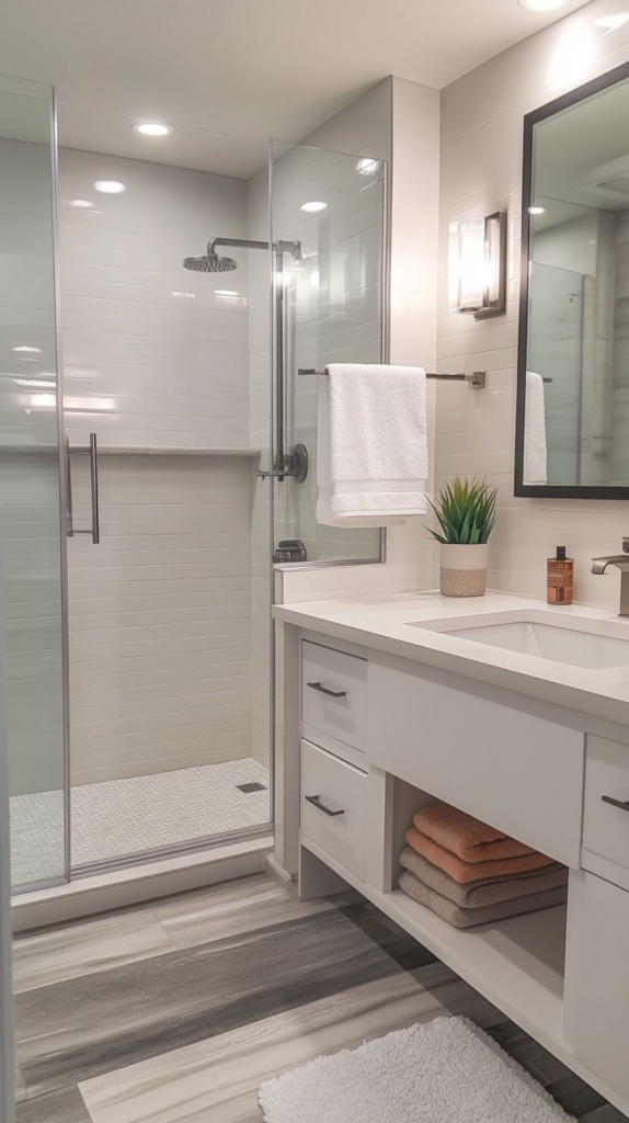 This design is ideal for anyone who wants their bathroom to feel current, functional, and effortlessly chic.