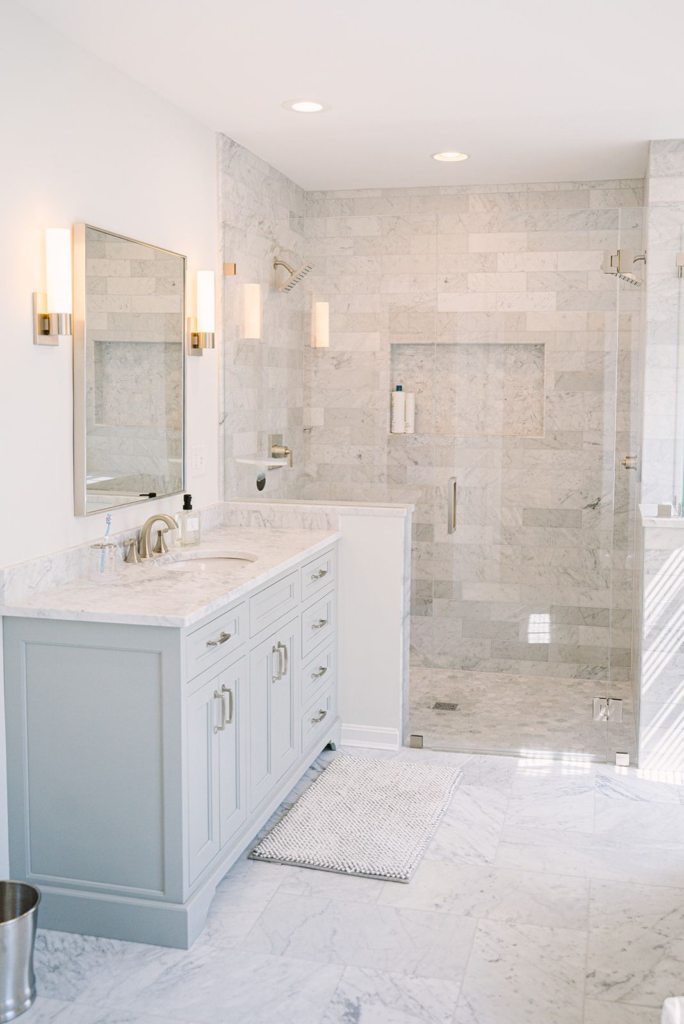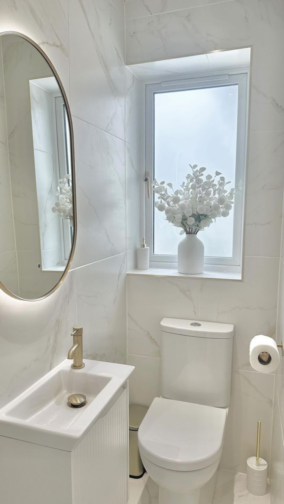 This approach guarantees a bathroom that is stylish, functional, and aesthetically striking. A cool white bathroom creates a sense of clarity and elegance, making it a space you’ll enjoy every day.